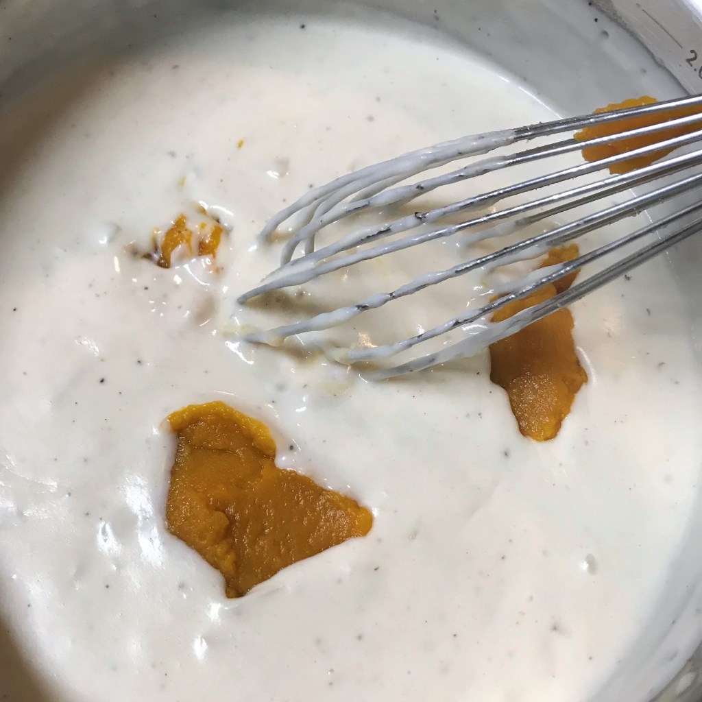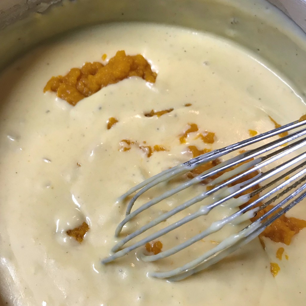 My pumpkin was cold, so I added a little at a time. I didn’t want to shock the bechamel and lose its smooth texture.