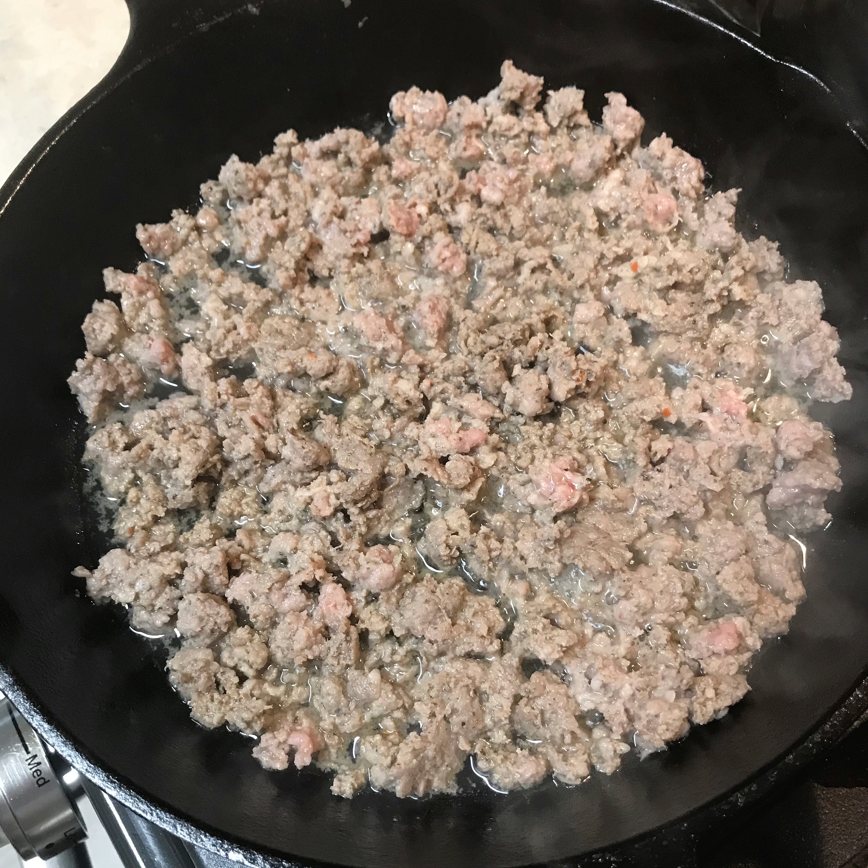 Cooking the sausage in a few tablespoons of broth helps me achieve a finer texture. You could also use water, beer, whatever.