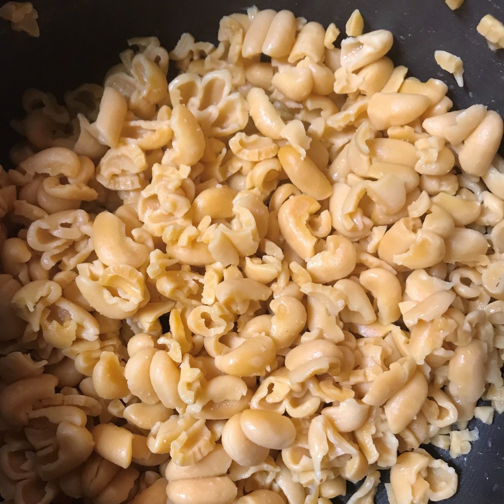 My cheese sauce made me very happy. I took a spoonful into the den for my husband, Les, to taste, and he immediately loved it as well. But here’s where things took a slightly disappointing turn. Remember the cute little pumpkin pastas? Well, they were pretty much a mess. In addition to their thick, heavy texture (and the fact that all the pieces fell apart), the primary flavor was starch. I was not having it. You guys know I get pretty excited about the specialty items at Trader Joe’s, but this one was decidedly not a winner. Thankfully, we have another supermarket very near the house, and I hightailed it over there for some dependable elbow macaroni. I’m not willing to “settle” when I’m trying to make a special dish, you know what I mean? 🙂
