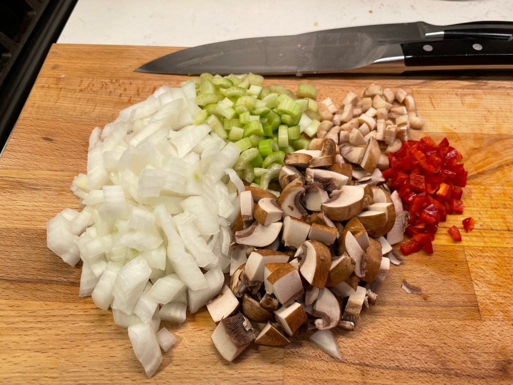 4 Tbsp. extra virgin olive oil, divided (you’ll use a little for each thing you saute)