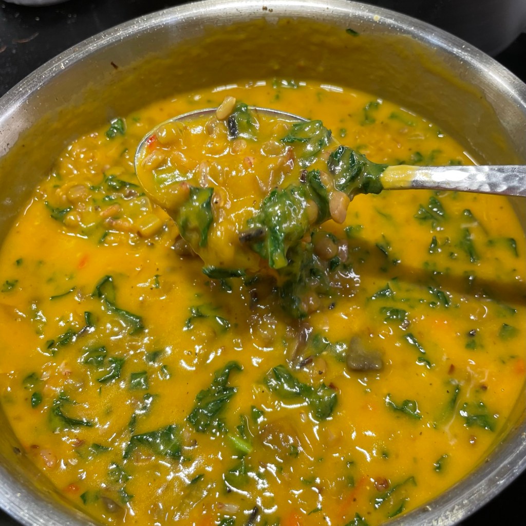 Finally, a mixture of cooked lentils, kale, sautéed mushrooms and aromatics gave my dish all the texture and fiber it needed to satisfy our hungry bellies. I also added a portion of wild rice blend to my stew, but next time I would sub roasted Yukon potatoes for extra chunkiness. If gluten isn’t a concern, I think cooked wheat berries would also be great in this, for a little snappy texture.