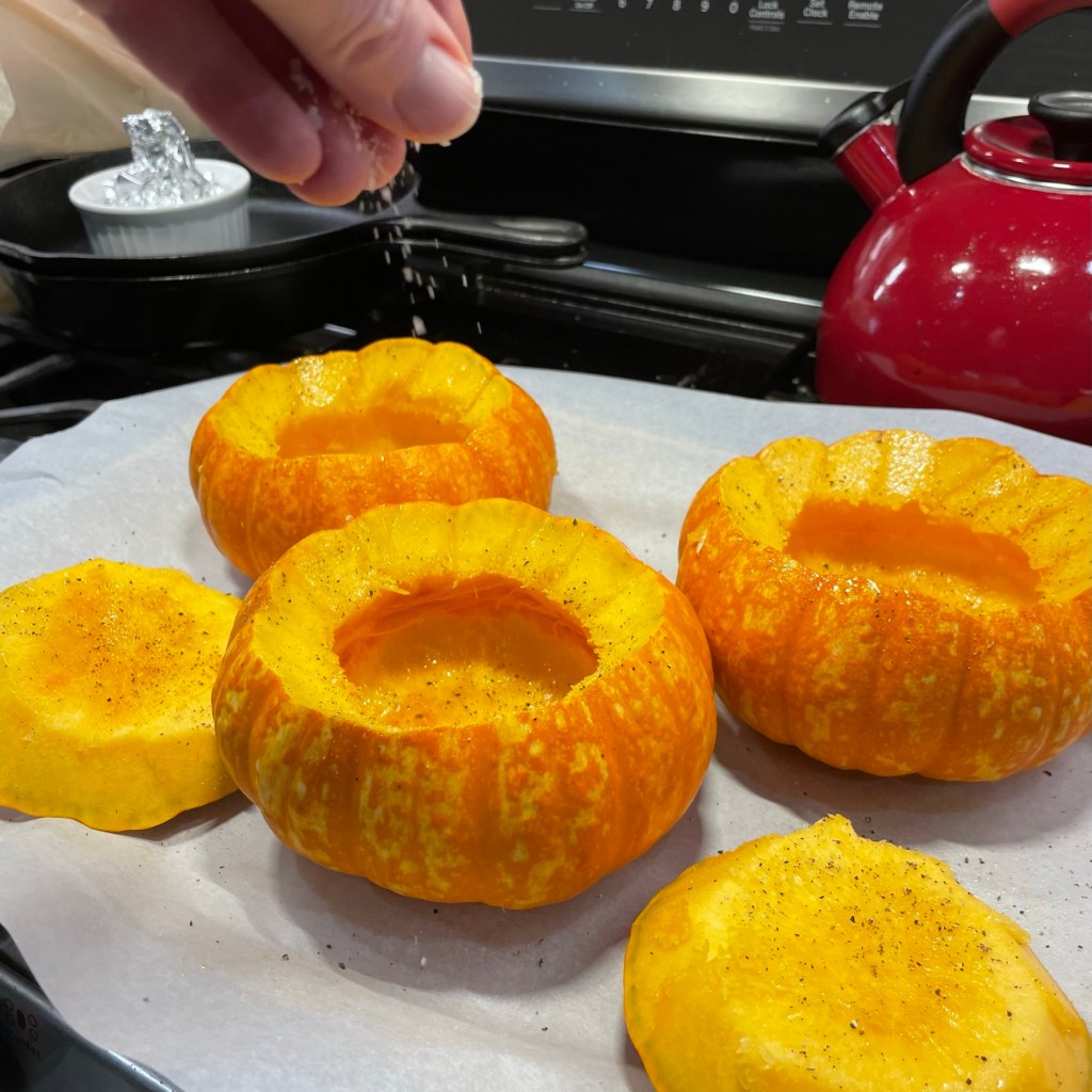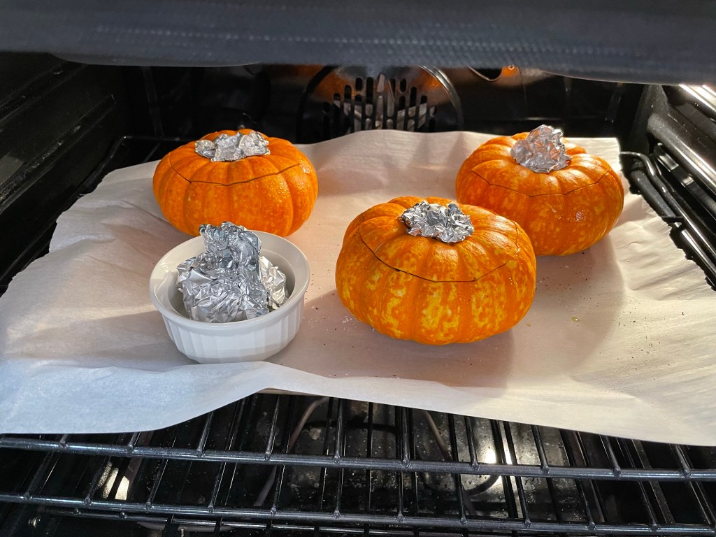 4 mini pumpkins, tops removed and cleaned (see ingredient notes below)
