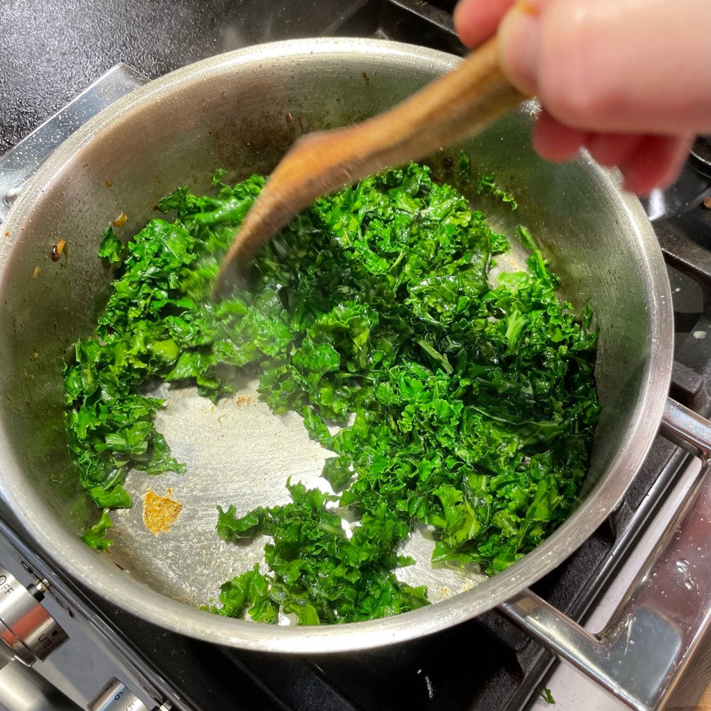 Spinach would work here also, but I love the rustic texture of chopped kale.