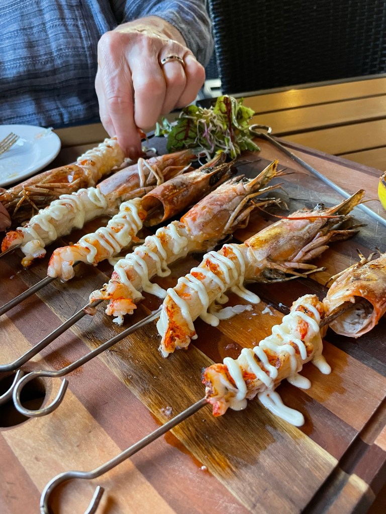 Starry Night Cafe demonstrated its commitment to partnering with local farmers and producers in every single thing brought to our table. From the specialty cocktail (don’t you worry, I’ll share it soon) to the coal-roasted oysters and grilled shrimp spiedini all the way to the stunning main course of wild halibut, I found myself wishing we lived closer!