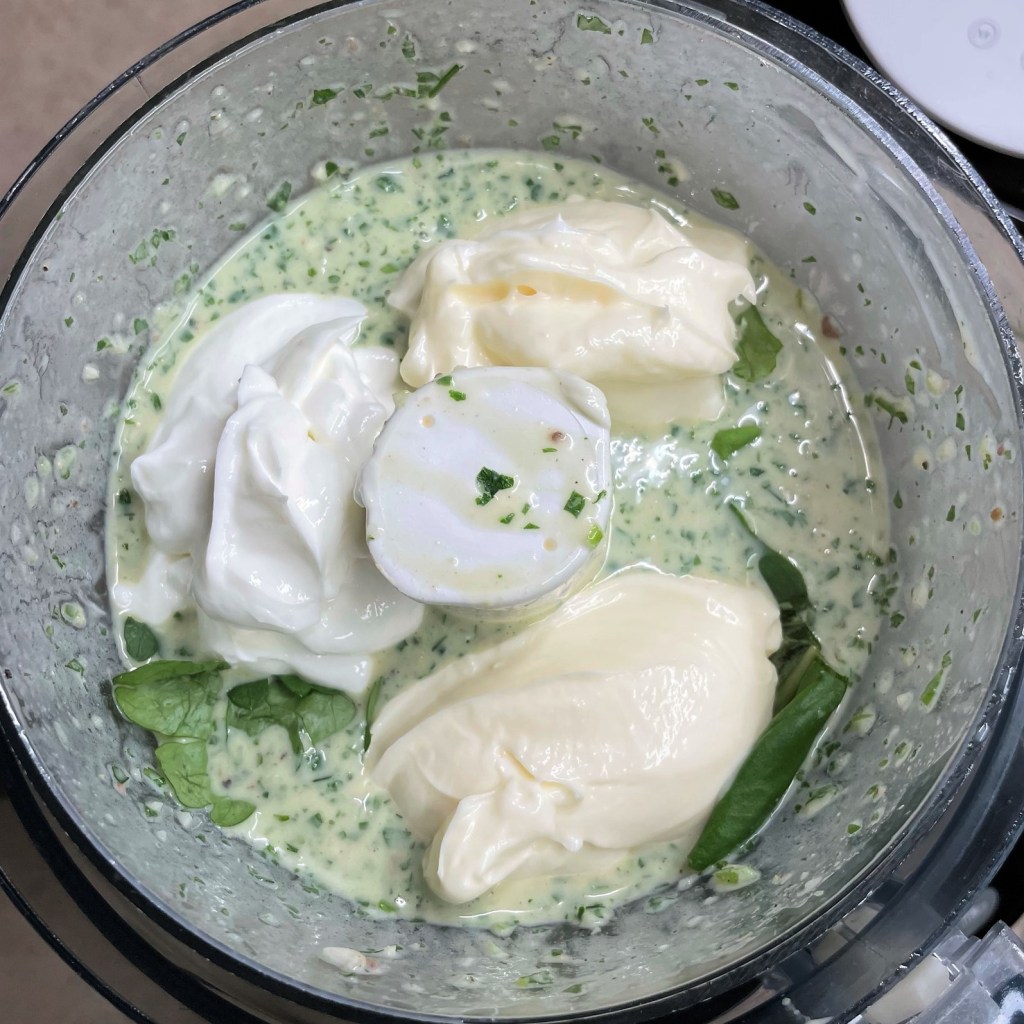 Part of the appeal of this recipe was that I already had all the ingredients, and the dressing wasn’t bad but I would recommend a few tweaks to improve the texture and balance the tang. Just about any kind of fresh, tender herb would be good here; basil, cilantro or dill would add a zesty punch. In the texture department, I would recommend addition of a couple tablespoons of mayonnaise to produce a creamier dressing that will cling better to your salad greens. If you do stick to the recipe offered by Breville, I recommend using a buttermilk with a thicker consistency so it doesn’t turn out watery.