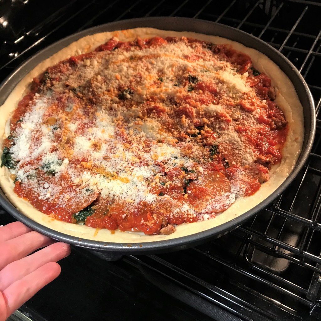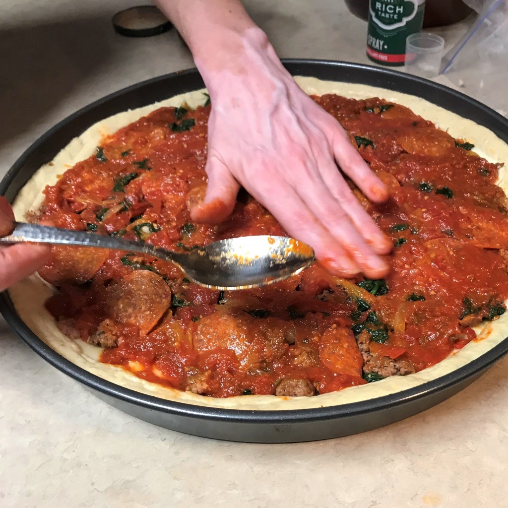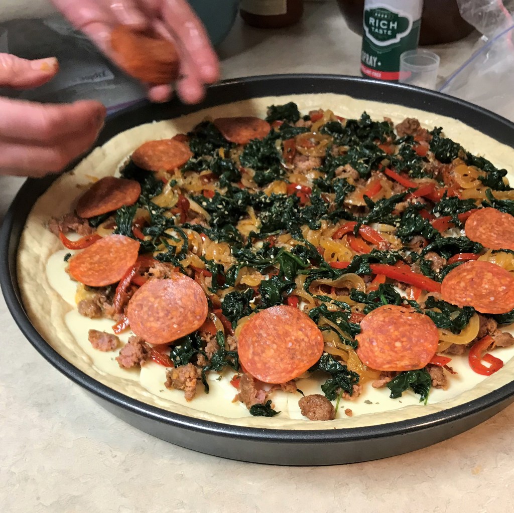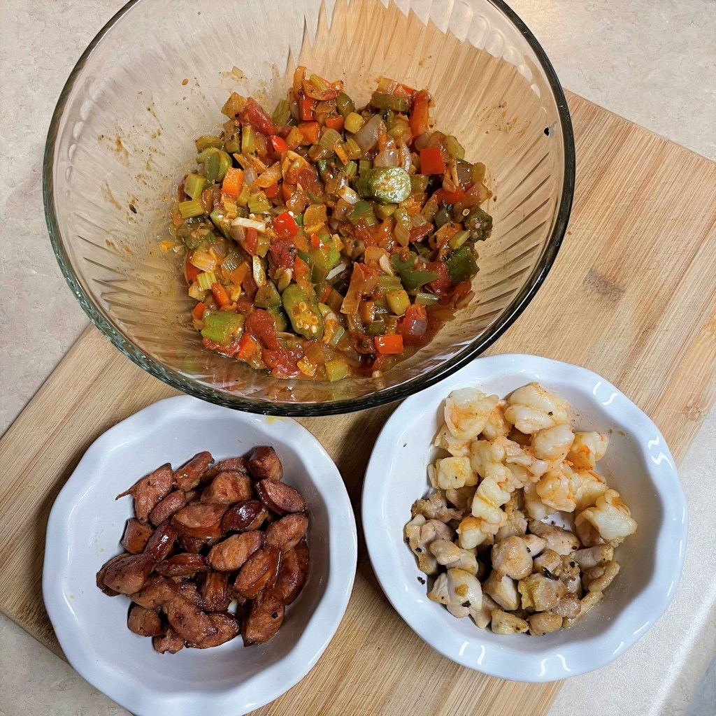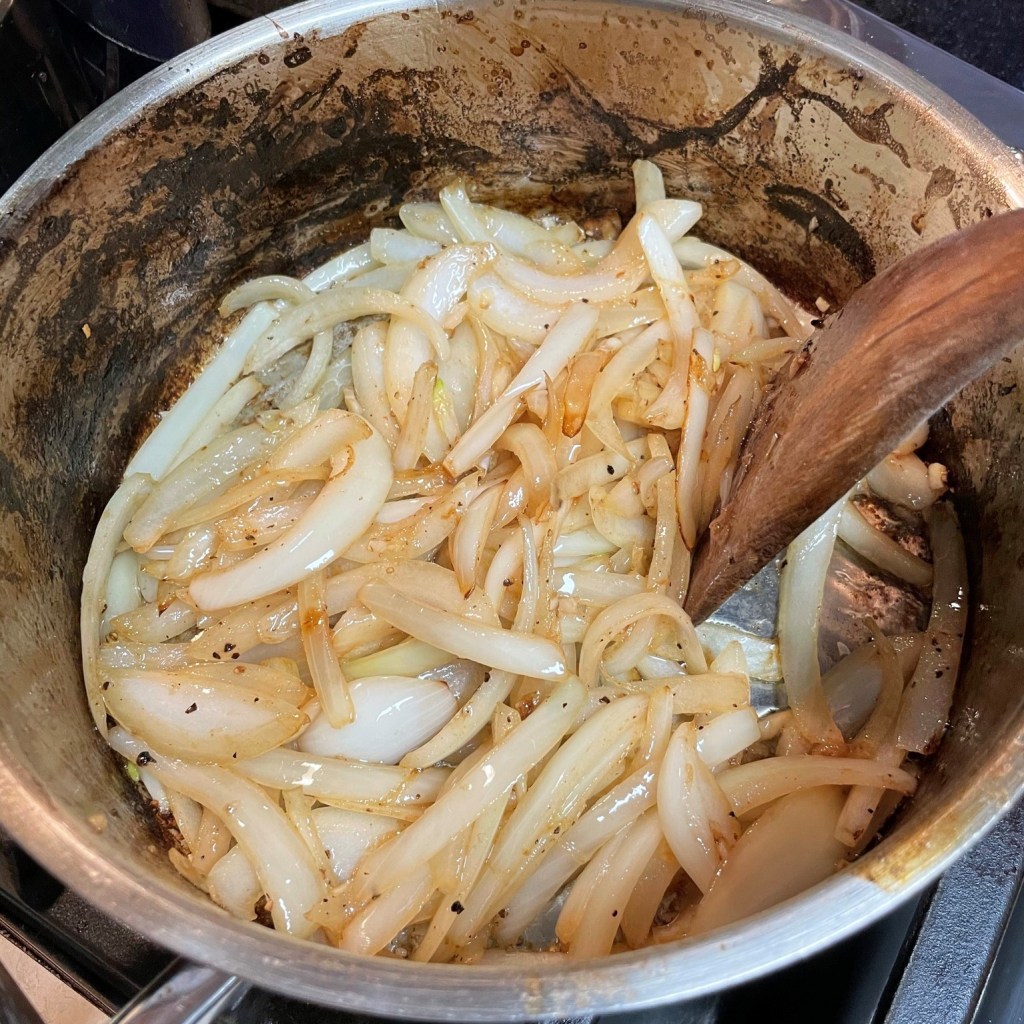 - Place a wide, shallow skillet or pot over medium heat. Add a swirl of olive oil and crumble up the sausage into the pan. Let it be for a couple of minutes before you toss it with a utensil, to allow browning to happen. Once the sausage begins to brown, add the onions and continue to cook until the meat is fully browned and the onions are tender. Add garlic and the smoky pepper seasoning. Transfer the sausage mixture to a separate bowl and set aside until after the next step.
