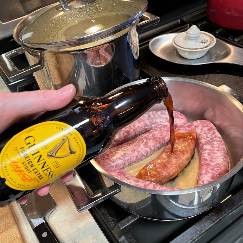 I chose the beer malt vinegar to deglaze the pot before simmering the collards to tenderness, and it was an excellent call. These greens are very fibrous, and a shot of acidity is helpful for breaking them down more quickly (plus it’s delicious). A generous splash of veggie broth finished the job with a 40 minute simmer, and then I stirred the sausage and onion mixture back in at the end, just long enough to heat the dish through.
