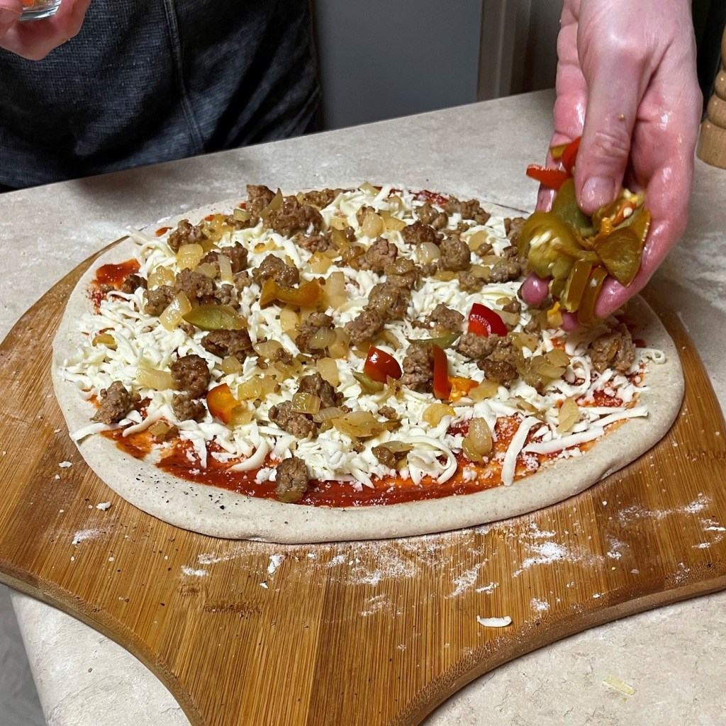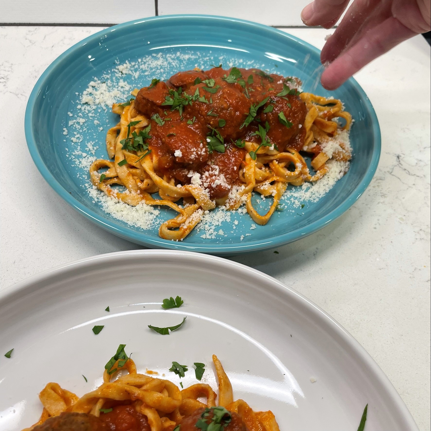 - 1/2 pound bulk breakfast-style sausage (spicy is great here)