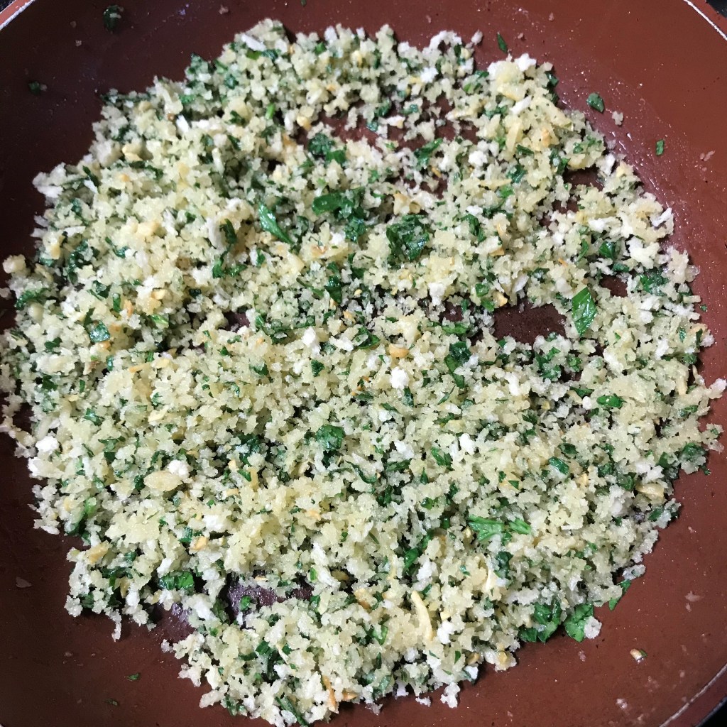 - In a small skillet, melt butter over medium-low heat. Stir in remaining lime zest and dried pepper flakes. Toss panko crumbs in the mixture until all butter is absorbed.