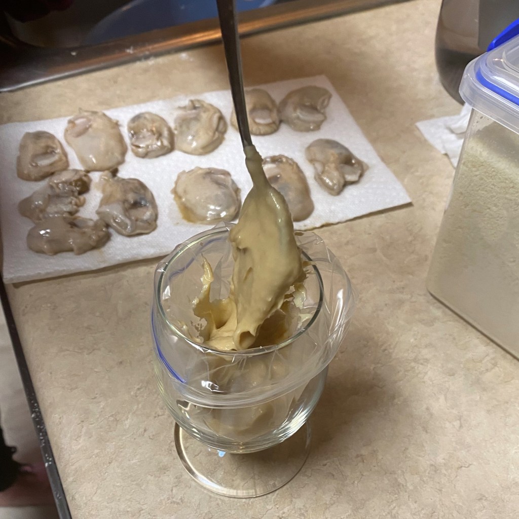 This technique begins innocently enough, with a mere 1/4 cup of mayonnaise per pound and a half of shrimp (or, presumably, any other protein you wish to marinate). Add some flavor enhancers; Kenji’s initial recommendation is a few cloves of grated garlic and a minced jalapeno half, a fairly generous pinch of kosher salt and then—wait for it—1/4 teaspoon of baking soda. Watch what happens to the mixture: