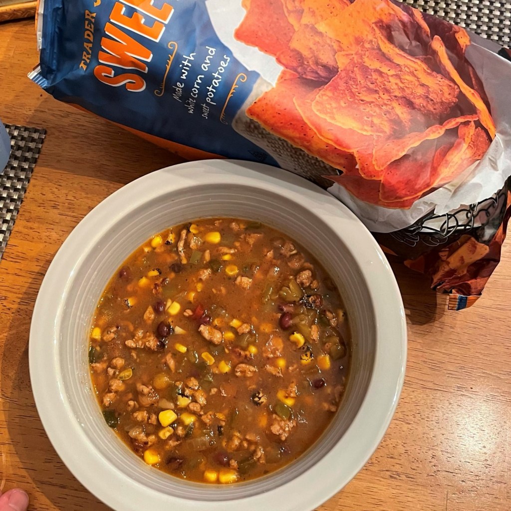 By the time the bean crisis was averted, I had already pivoted to Plan B for dinner that night, so I stashed the soup in the fridge and rewarmed it the following evening. Soup is always better on the second day anyway, and this big ol’ bowl of yum made my hubby and me very happy.