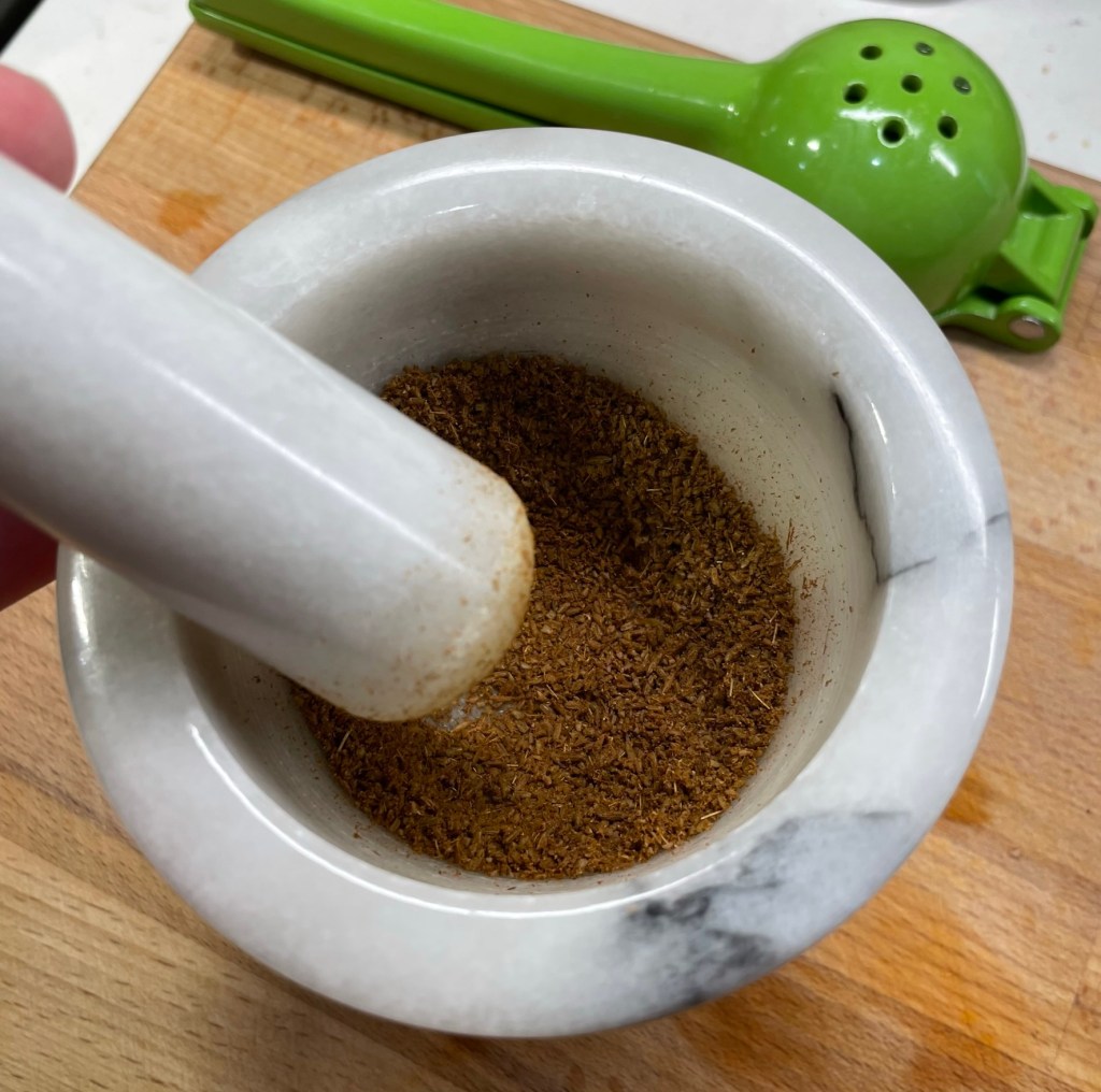 The seasonings came next. I pulled out a small skillet to toast up some whole cumin seed. Toasting seed spices is an easy way to elevate their flavor, and a quick crushing in my mortar and pestle revealed a most potent aroma. Add to that a generous sprinkling of chipotle chile powder, plus salt and pepper (of course), and my kitchen already smelled inviting!