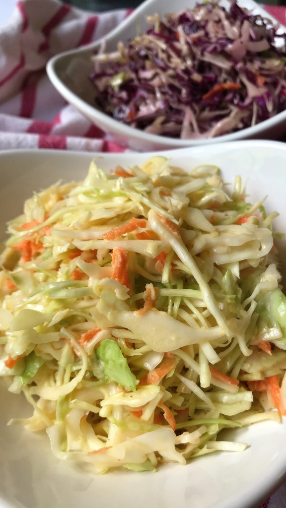 Pour half of the dressing over the shredded cabbage and carrots and toss to coat, then add more dressing as desired. As the creamy dressing settles in, the cabbage will soften and shrink a good bit. It’s easier to add dressing than to take it away. Cover salad and refrigerate a couple of hours until ready to serve.