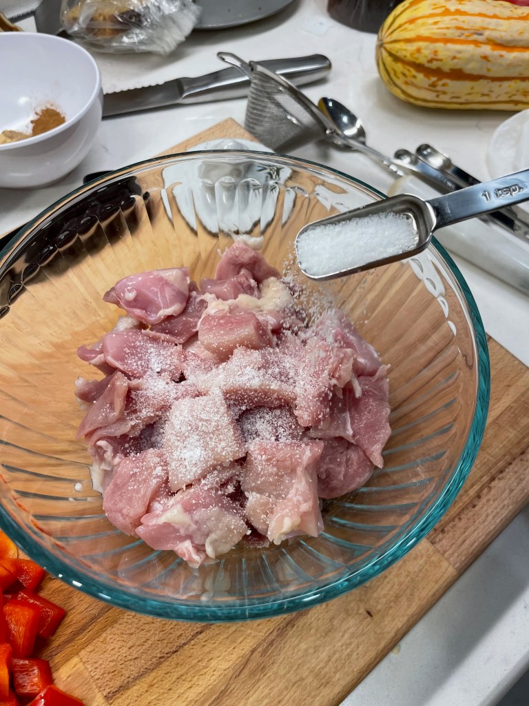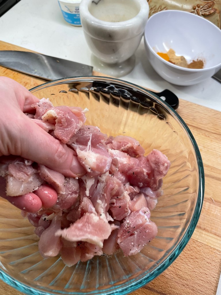 I did this part in the late morning and let the chicken hang out in the fridge all day.