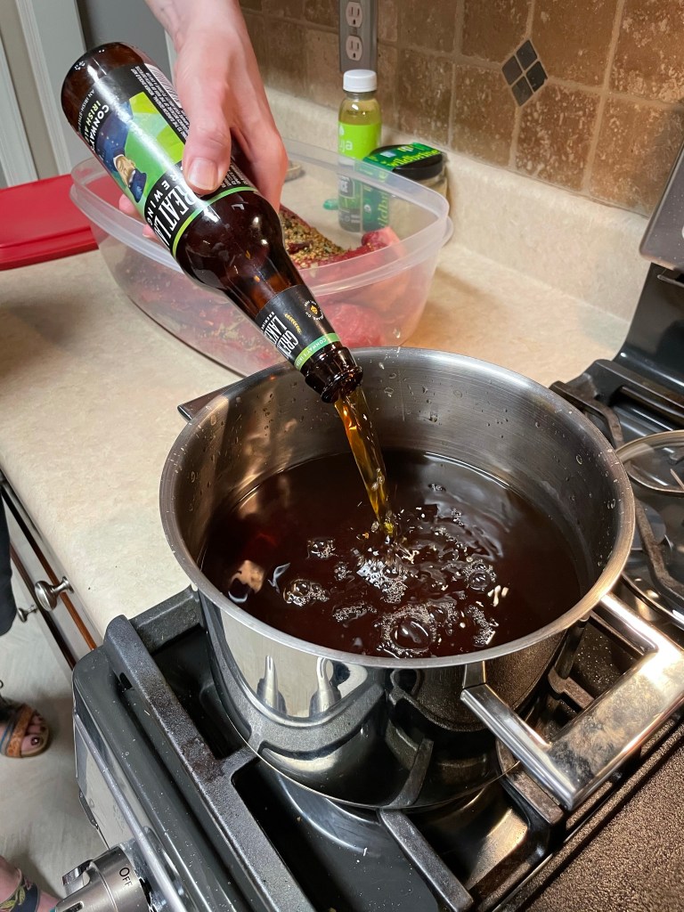 First and foremost, I’ve learned the importance of getting my ducks in a row. Things go much more smoothly when I take the time to measure out and line up my ingredients. Here, you see that I’ve organized everything into the order I’ll need them. I took time to make fresh coffee for the batter, and I even measured out the Jameson and Bailey’s so that they were ready at the right time. I cannot describe how much this single practice has changed my baking game. If you struggle with getting things right in baking, maybe this will help you, too.
