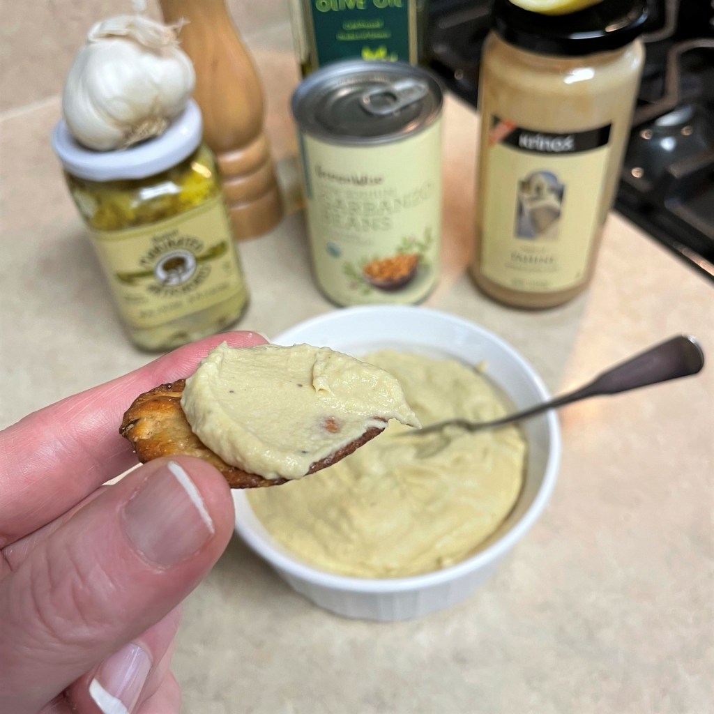 Warm the garbanzo beans to soften them up before you begin and use a food processor or a good blender for best, smoothest results. Enjoy your hummus on crackers, chips, crostini or fresh veggie slices.