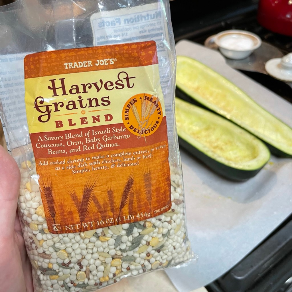 This couscous blend was already opened, and I used it to help clear out the pantry inventory. Any couscous, quinoa, bulgur or even rice would be great in this recipe.