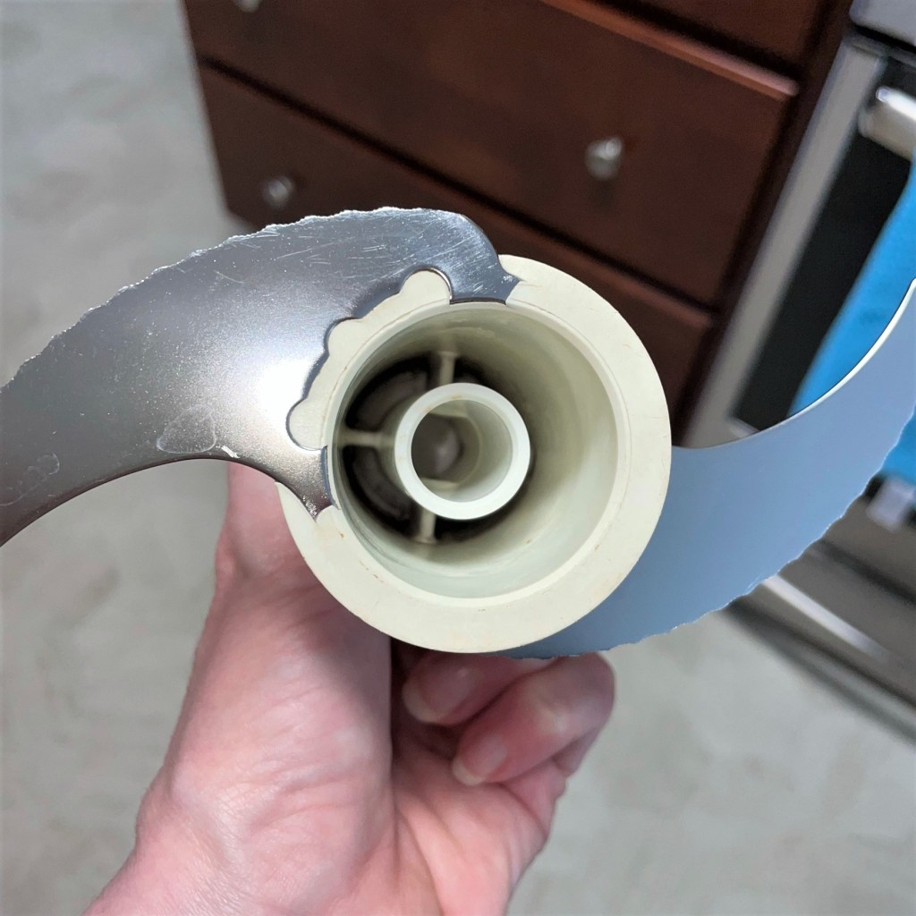 As we are preparing for the load out of the old kitchen (not to mention a bevy of random pantry and freezer ingredients), I’m giving all of our other small electrics a chance to prove themselves worthy of a spot in our new space. One item that will be (sadly) getting the boot is our KitchenAid 11-cup food processor, but not because we don’t use it; on the contrary, this thing gets so much action, it is on its last legs. The protective film over the power buttons has become brittle and is completely worn away from the pulse button, the feed chute is cracked and the inside of the “S” blade stem has some dried-on crud that I have not been able to remove. I have had the appliance nearly 20 years, and KitchenAid no longer makes my model (or any of the parts), so my only choice will be to replace the machine.