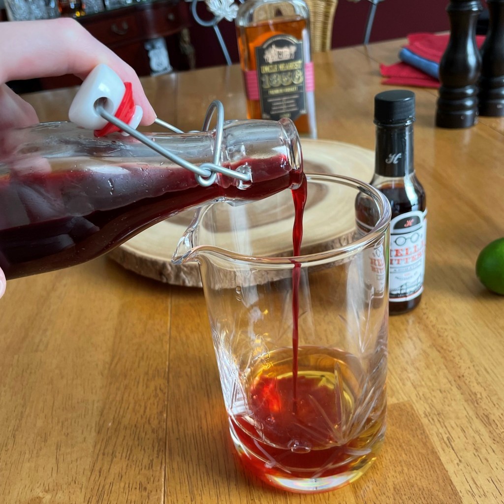 The hibiscus-vanilla syrup adds traditional Juneteenth color and flavors to the whiskey.